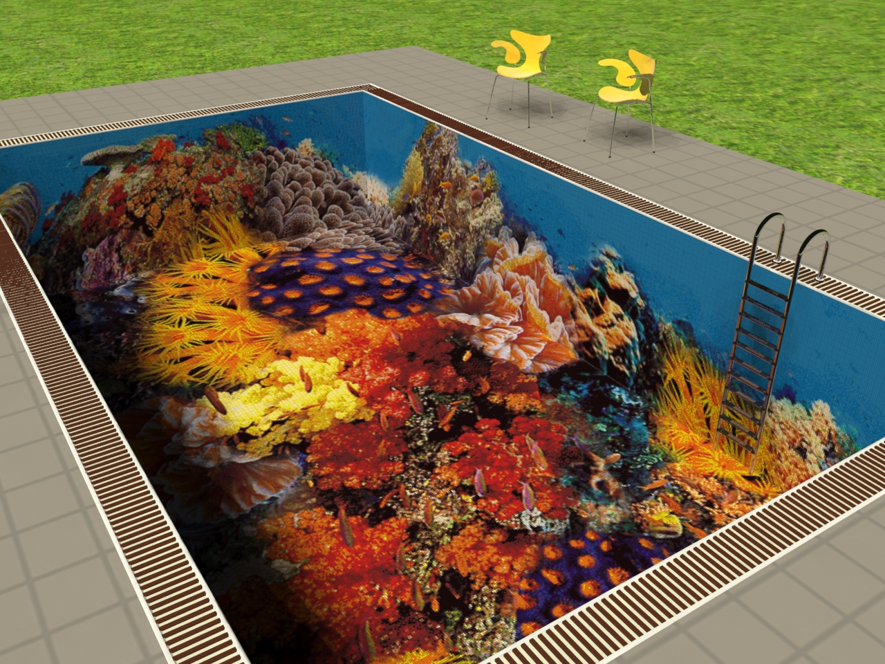 Kроме эстетической красоты, стеклянная мозаика является еще и самым лучшим материалом для этих целей благодаря своим свойствам, таким как водонепроницаемость, кислото и щелочестойкость, антибактериальность. Использование мелкой мозаики в производстве панно позволяет с легкостью монтировать его на большинство поверхностьей, в том числе на круглые и неровные. Детские бассейны облицованные красивыми и яркими картинками будут радовать детей и восхищать взрослых.