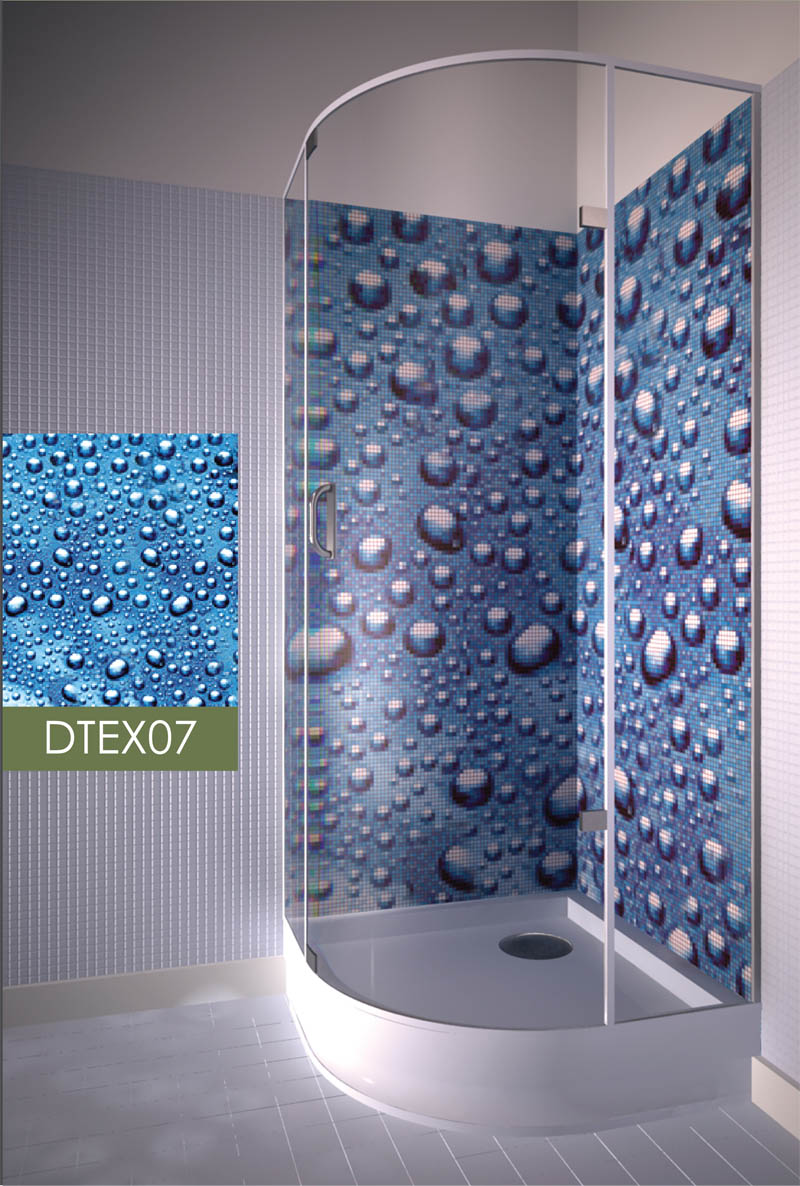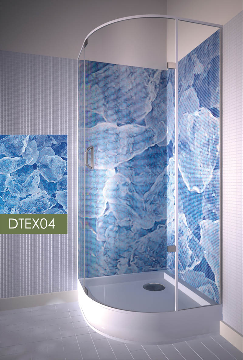 Применение мозаики в квартире позволит вам получить качественное покрытие стен в душевой кабине, ведь стеклянная мозаика не впитывает влагу и не трескается при резком изменении температур, а по долговечности и износостойкости превосходит многие материалы. Подобрав удачную картину для стены в душевой Вы получите удовольствие не только для тела, но и для души.