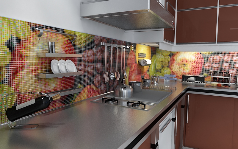 Мозаика прекрасно подходит для отделки фартуков кухонь и столешниц. Удивительную атмосферу уюта поможет создать мозаика для кухни, являющаяся оптимальным выбором между красотой и комфортом. Органичные вкрапления из стильного материала дадут возможность подчеркнуть общую тональность мебели и защитят стены от негативного воздействия бытовых химических средств, высокой температуры, влаги.